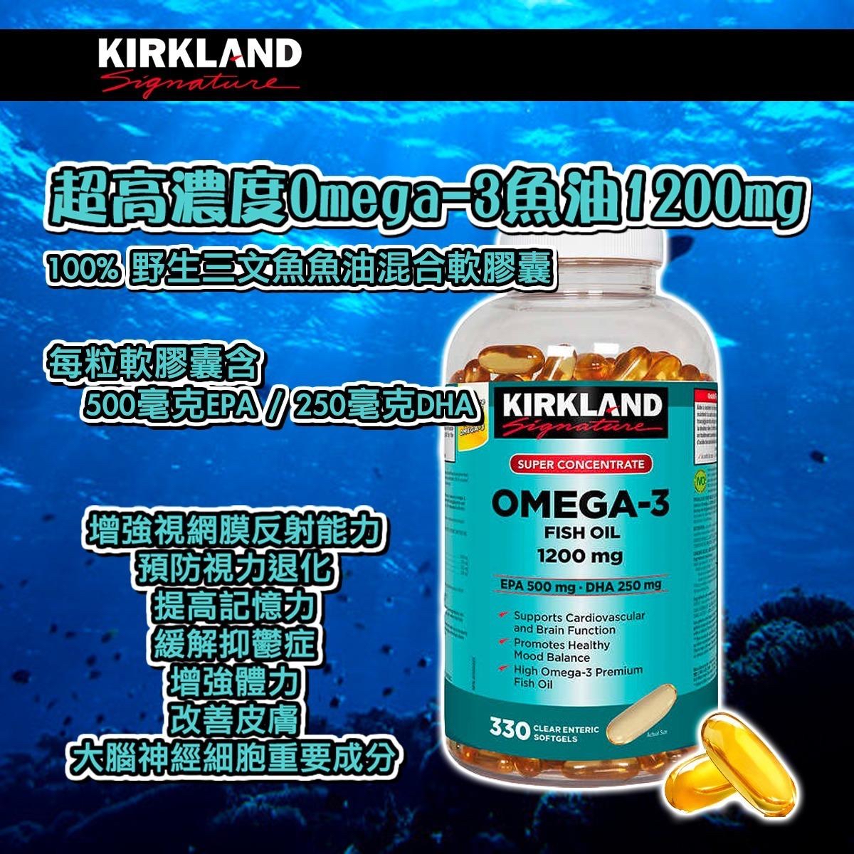 🇨🇦加拿大Kirkland Signature 超高濃度Omega-3魚油 1200mg ‼️截單:2/6/2024 WoW~香港賣緊$38X,加拿大勁減$265樽(330粒)😍 一舨保健,可食330天❗ $269/樽(330粒), 2樽以上$265/樽 🚚🚚到貨日:8月中下旬 Kirkland Signature™️野生阿拉斯加三文魚油是從阿拉斯加的寒冷和原始水域提供的100%純新鮮野生三文魚油。專有的提取方法很溫和。提取出非常純淨的魚油,沒有污染物,並且天然平衡的Omega-3脂肪酸。 Kirkland Signature Omega-3 現在是超純化的,在透明的腸溶軟膠囊中提供 750 毫克純 EPA 和 DHA。各種野生魚類均經過嚴格測試,以符合嚴格的純度和效力質量標準。一系列高度先進的工藝,包括分離和純化 EPA 和 DHA 的分子蒸餾技術,用於生產超純、高質量的魚油,其氧化損傷的可能性最小,確保魚油的新鮮度。 ✅ 每粒軟膠囊含500毫克EPA / 250毫克DHA 有助於支持心血管健康和大腦功能。 ✅ 超純化高濃度1200mg ✅ 100%純新鮮野生三文魚油 ✅ 來自寒冷海水的野生魚類含有高水平的重要營養素。 ✅Omega-3脂肪酸對於支持心血管健康,腦功能以及循環系統和關節活動至關重要。 ✅ 不含人工色素 ✅ 防腐劑或甜味劑 ✅ 不含乳製品 ✅ 不含麩質 ✅ 不含酵母 ☘️ 增強視網膜反射能力. ☘️ 預防視力退化. ☘️ 提高記憶力. ☘️ 緩解抑鬱症. ☘️ 增強體力. ☘️ 改善皮膚. ☘️ 大腦神經細胞重要成分. 👩🏻🔬推薦成人用量(19 歲及以上): 對於大腦、心血管健康以及作為 omega-3、EPA 和 DHA 的來源:每天 1 粒軟膠囊或遵照醫生的指示。 用於降低甘油三酯/甘油三酯和促進情緒平衡:每天 2 次,每次 1 粒軟膠囊或遵照醫生的指示。對於類風濕性關節炎:每天 2 次,每次 2 粒軟膠囊或遵醫囑。 😋 最佳食用限期(Best Before):2027年7月