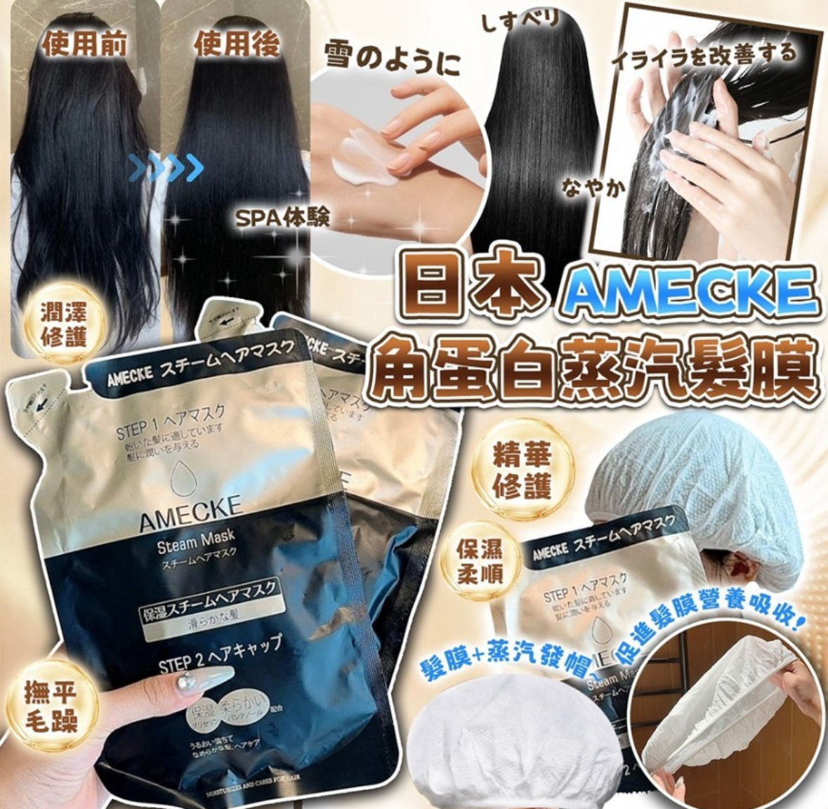 🇯🇵日本製Amecke 角蛋白蒸氣髮膜 (附送髪帽)