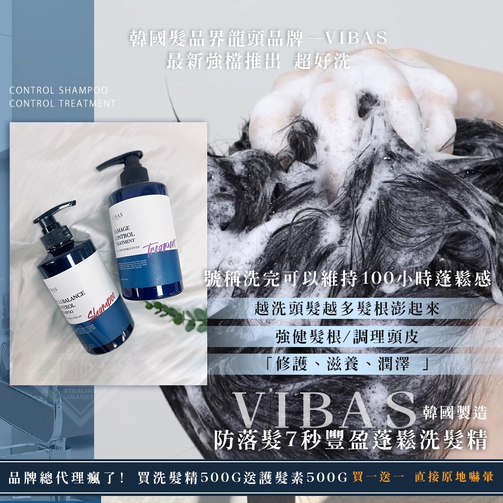 🇰🇷韓國製造 VIBAS防落髮 7秒豐盈蓬鬆洗髮精500g 送護髮素500g(買一送一)