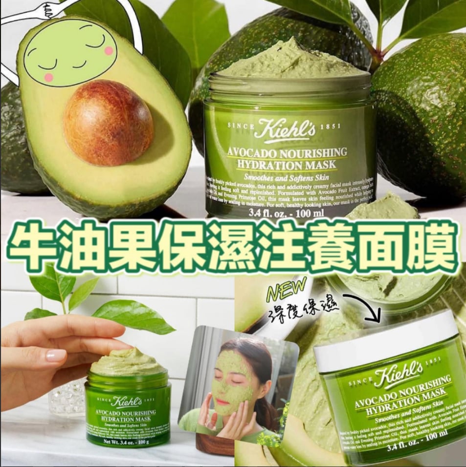 💢現貨 x1💢美國製 Kiehls 牛油果保濕注養面膜 100g ❌專櫃 $420❌🇺🇸美國減價差不多6折‼️‼️‼️ 💰$238/件 🚗約1~2星期 ✨慢慢乳化吸收,用後感覺好滋潤好保濕🥰 🆕創新的面膜質感尤如天然牛油果肉🥑,揉合高濃度牛油果🥑精華、 🥑牛油果油及月見草油,富含豐富奧米加成份,能即時為肌膚鎖緊水份,滋養保濕。 👉🏻更有效強化肌膚屏障,令肌膚細緻柔滑,感覺煥活清新🥰!比新鮮牛油果🥑帶來更有效的滋潤和保濕功效。 🥑牛油果精華 嚴選來自🇺🇸美國種植的牛油果🥑,從牛油果果肉🥑中萃取出天然牛油果精華,含有高濃度脂溶性成份 ⚗️牛油果油 將新鮮牛油果🥑壓碎並提煉而成的牛油果油。含有豐富不飽和脂肪酸, 🌾月見草油 從月見草的成熟種子中提取,🌾月見草的花呈黃色,蘊含大量不飽和脂肪酸, ✅有助保持皮膚的水分💧和彈性,更有效抗炎及強化肌膚屏障。 📌使用方法:以手指沾出適量面膜,並於指尖間暖和。 -於肌膚敷上一層厚而均勻的面膜,避開眼部位置。 -等待15分鐘後以打圈手勢用清水洗淨,再輕輕印乾臉龐。 -建議每星期使用2-3次 -可配搭牛油果眼霜,進一步保濕修護敏感的眼周肌膚。 -規格 : 100g -產地:美國