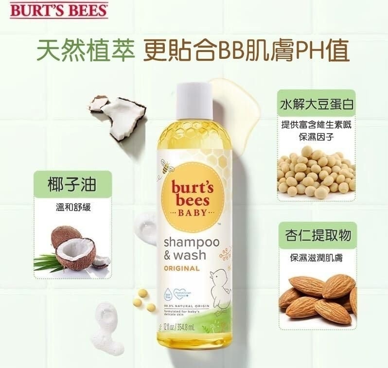 BURT’S BEE BABY 寶寶天然二合一洗髮沐浴露 354.8ml ❌❌截單日:4/7/2024 💰$49/支;2支以上$45/支 🚗🚗到貨日:7月下旬 🌿香草的天然香氛,甜蜜呵護寶寶👶🏻天然胺基酸潔淨配方,溫和不流淚,優異的親膚性💦水嫩洗淨寶寶嬌嫩的髮絲與肌膚。 ✅薰衣草和香草香氣有助于讓寶寶睡覺😴 ✅無淚及不刺激眼睛天然植物清潔配方🫧 ✅多功能二合一潔膚露,能溫和清潔及滋潤寶寶幼嫩肌膚和頭髮 ✅含防過敏配方及天然成份🍀 ✅不含硫酸、酞酸鹽、石化物以及苯甲酸酯🚫 規格:354.8ml 保存期:2025年5月或之後