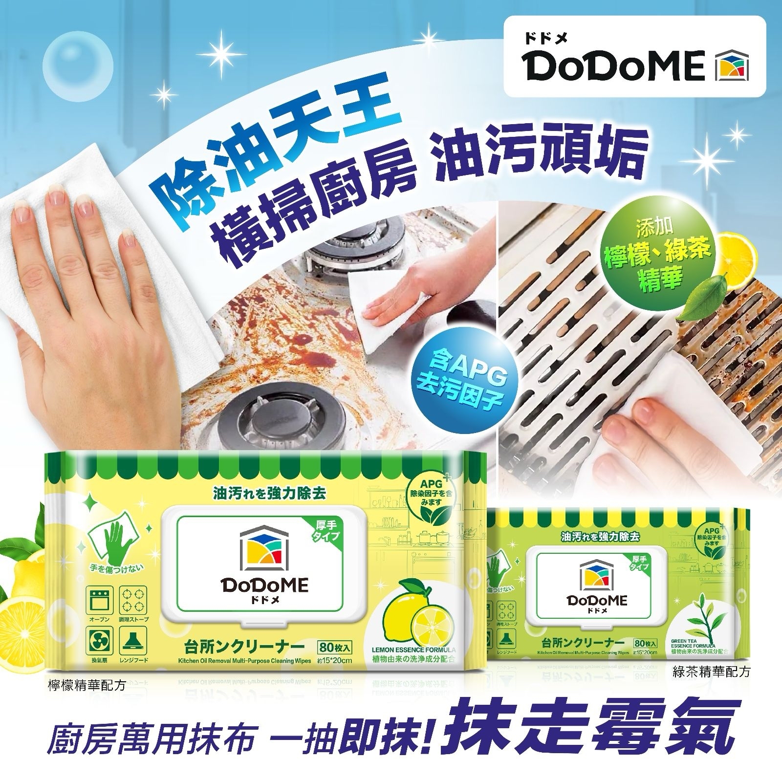 DoDoME 廚房係列除油天王廚房濕巾 80枚(1套5包)