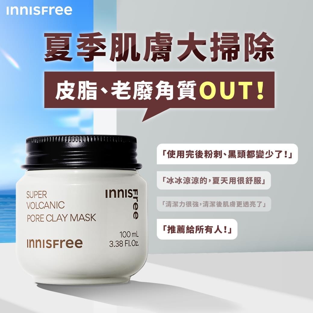 Innisfree超級火山泥毛孔潔淨面膜(100ml) ❌❌截單日:17/6/2024 💰$88/個;2個以上$85/個 🚗🚗到貨日:8月上中旬 💥💥強效淨透毛孔,清爽暢快感! 🌟 一次吸除多餘油脂,打造無暇美肌! 🌟 🧼毛孔深層清潔 ✨乾淨滑溜肌 🧲毛孔吸塵器 🌟 全方位毛孔護理,一次解決9種毛孔問題! 👉🏻調節油脂分泌 #控油 👉🏻收斂毛孔 #緊緻毛孔 👉🏻改善膚質 #光滑膚質 👉🏻去除老廢角質 #去角質 👉🏻深層清潔 #深層清潔 👉🏻吸附粉塵 #潔淨 👉🏻改善黑頭粉刺 #黑頭粉刺 👉🏻提亮膚色 #亮膚 👉🏻清涼降溫 #降溫 🌿 低敏性乳霜質地,敏弱肌適用! 🌋擁有絲滑乳霜質地的深層清潔泥膜,高延展性及清涼降溫效果,帶給每一寸肌膚舒適的使用感受,敏弱肌適用! 濟州火山皮脂淨化粉末™️💁🏻♀️INNISFREE 研發出「濟州火山皮脂淨化粉末™️」(Jeju Volcanic Cluster Sphere™️)運用尖端科技,將研磨後的火山泥粉末均勻覆蓋在微細的多孔粒子上,藉此增強皮脂吸附能力,且具有更加柔和的使用感受。 🌋Purify 只要使用一次,立即見效,有效吸除多餘油脂!✨ 搭配使用效果更佳 ➡️火山泥毛孔調理潔面乳(BHA) #深層清潔 #去污控油