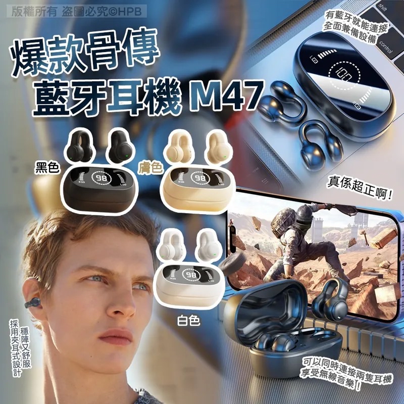 M47 夾耳式藍牙耳機 ❌❌截單日:16/5/2024 💰$65/件;2件以上$55/件 🚚🚚到貨日:7月中下旬 A. 黑色 B. 膚色 C. 白色 爆款骨傳藍牙耳機 M47,真係超正啊! 佢唔需要放入耳朵,透過骨傳技術播放音樂,咁樣就可以同時聽歌同聽到外面嘅聲音 佢仲支援無線連接,唔怕纏繞,好方便!💪🎧🔥 而且,呢對 M47 耳機採用夾耳式設計,穩陣又舒服,做運動時都唔使擔心跌落👍🏻👍🏻 而且佢支援 TWS 連接,可以同時連接兩隻耳機,享受無線音樂!🏃♂🎶💯 呢款耳機仲有智能功能,例如觸控操作, 可以輕觸控制音樂播放、切歌同調節音量等等👍🏻👍🏻 充電方面都好方便,支援快速充電,一次充好電就可以聽好耐嘅音樂。⚡🎵 如果你鍾意運動同聽歌,呢對爆款骨傳藍牙耳機 M47 絕對係你嘅首選! 仲可以根據個人嘅喜好揀選 M47 嘅顏色🌈 快啲買一對,享受高質素嘅音樂🎧同時保持安全!🔝🔥