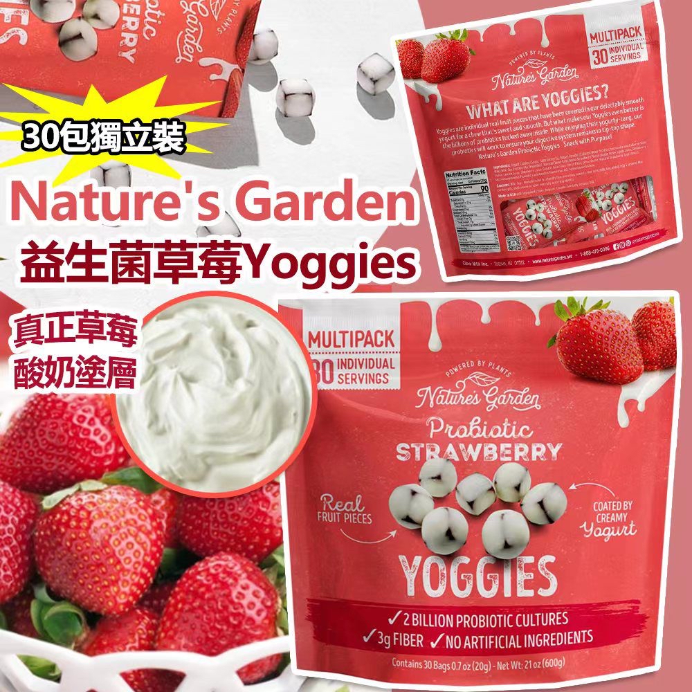 Nature's Garden 益生菌草莓 Yoggies (1袋30包) ❌❌截單日:9/5/2024 💰$189/袋;2袋以上$179/袋 🚚🚚到貨日:7月下旬 美國🇺🇸Nature's Garden 試🉐️多👍果仁包裝 今次推出春季限定新品種 ✌️小編超級推介 健康‼️美味‼️好好嚼‼️嘴邊小零食推介❤️🔥 呢款#益生菌 #草莓 #Yoggies 🍓採用天然水果草莓製成,🍓含有真正草莓,可以補充纖維&維生素C👍🏻 外層再淋上含有十億益生菌既花園酸奶塗層🤩🤩,有益身體腸道健康& 增強 #免疫力 💪🏻 嚼落酸酸甜甜,濃郁草莓🍓清香搭配滑滑既酸奶塗層,越嚼越上頭🤤🤤大人細路都鐘意食😋😋 😀仲係獨立包裝,隨時隨地帶在身,無聊既時候拎出來嚼一嚼😎😎 ❤️含有真正草莓 ❤️含維生素C&纖維 ❤️十億益生菌 ❤️獨立包裝 -規格:1袋30包獨立包裝 -產地:美國 -最佳品嘗期限:約2025年4月
