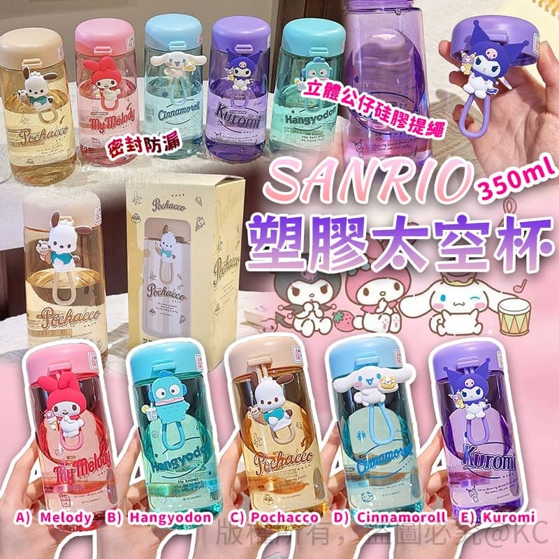 SANRIO 塑膠太空杯 350ml ❌❌截單日:14/6/2024 💰$49/個;2個以上$39/個 🚚🚚到貨日:7月中旬 A. Melody B. Hangyodon C. Pochacco D. Cinnamoroll E. Kuromi SANRIO高顏值太空杯,造型矽膠手提, 泡牛奶泡果茶,開心每一天🥳🥳 食品級PC材質杯身,每一口安全無異味👍🏻👍🏻 不含BPA, 守護家人健康💗💗 📍容量︰350ml 📍材料︰PC+PP+矽膠 📍尺寸:14.3*6.3cm ⚠️商品圖片顏色因電腦螢幕設定差異會有所不同,以實際商品顏色為準