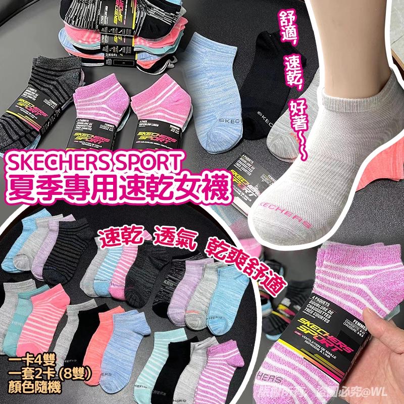SKECHERS SPORT夏季專用速乾女襪(一套2組 / 每組4對) ❌❌截單日:2/5/2024 💰$48/套;2套以上$45/套 🚚🚚到貨日:6月下旬 🌺舒適,速乾,好著~~ 廣受時尚年輕人喜愛✨這款襪子是專爲運動設計的,適合跑步、馬拉松、籃球等各種運動 它採用棉+氨綸設計,提供了更好的保暖性和穩定性,具有速乾和透氣的特性,能讓腳部保持乾爽舒適 減少異味和汗水滋生細菌的問題,提供運動時的支撐和舒緩🌈對於長時間運動的人來說非常有益 🙈能減少腳部疲勞和不適感,在運動場上,都能滿足需求,穿上它,盡情釋放你的運動活力 材質:棉+氨綸 💥每組4對 💥一套2組 (8對) 💥顏色隨機 尺碼6-10女鞋
