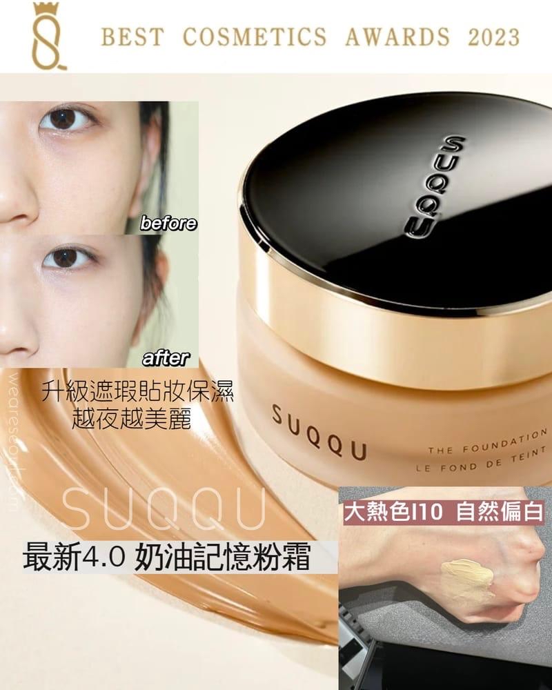 等左好耐,終於等到個靚價🩷 SUQQU 升級版4.0 金蓋奶油記憶粉霜 SPF30 PA++ 30g 貨裝 ❌專櫃正價$945/樽❌ 💰$348/樽 🚘2~3星期到貨 大熱色號 110- 中性第二白 是最受歡迎的中間色調 調色自然柔和,而且帶點提亮又不假白 一般偏白至自然膚色都適用 第三代黑瓶 最新升級4.0 金蓋 又被選為「年度最佳粉底」 🏆 新款金蓋,質地更濃稠一些, 有極佳延展力,遮瑕和保濕力都比舊版更好,一般輕度遮瑕都可以遮蓋,與皮膚融合能力更強,不易脫妝 SUQQU 神級奶油肌光澤感! 不是浮光是真正 " 由底透光貴婦肌 " 妝面充滿細膩質感,長時間持妝亦不易暗啞與皮肌融合後會透出微妙光澤感「越夜越美麗」 有13種美容保濕精華,養膚同時有乾爽妝感的「王道奶油粉底」