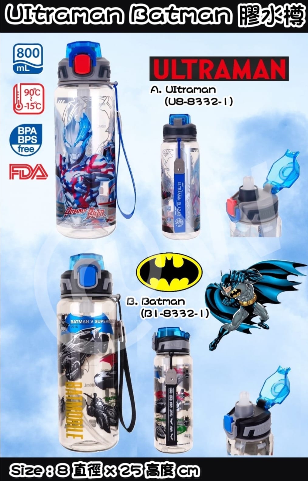 Ultraman / Batman膠水樽連可拆式飲管及手繩 ❌❌截單日:29/6/2024 店主優惠$119/個 🚗🚗到貨日:8月中下旬 🦸Ultraman / Batman 💯%正版按權‼️ ️安心使用🫰 8️⃣0️⃣0️⃣ml大容量水樽, 水樽可存放飲料溫度為 -15℃ ~ 90℃。 附有可拆式飲管及手繩,方便戶外活動使用~ 🙅🏻♀️不含雙酚A及塑化劑 ✔️已符合美國糧食與藥物管理局(FDA)標準,可放心使用 ♪ ✨兩款可選: A) Ultraman (U8-8332-1) B) Batman (B1-8332-1) 📌尺寸:直徑: 8cm; 高度: 25cm 📌物料:塑膠 ‼️注意事項:圖片只供參考。圖示顏色可能與實物有別,應以實物為準。 ‼️安全警告:請在成人指導下使用。