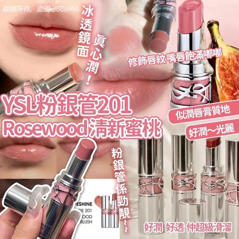 YSL粉銀管唇膏 1.6g #201 Rosewood 清新蜜桃 ❌❌截單日:18/5/2024 💰$68/支,2支以上$64/支 🚚🚚到貨日:7月下旬 YSL粉銀管唇膏 1.6g #201 Rosewood 清新蜜桃 好似潤唇膏嘅質地,好潤~ 加上粉銀管外觀勁靚呀😍 而家勁減低至$68/支咋❗️ 銷量NO.1🔥 固體唇釉質地💄 好潤👍🏻好透👍🏻仲超級滑溜 冰透鏡面😍一樣係固體唇釉質地 #真心潤 發色濃郁又清透💋 薄搽很日常 ,厚搽棕調就會多啲🤎 薄涂啲色好似係底到透出嚟咁 🤤純欲感🥰果凍包覆感 修飾唇紋🉐嘴唇都特別飽滿嘟嘟 📍容量:1.6g 📍到期:2025年 📍顏色:201 ⚠️膏體較軟,避免扭出太多,小心輕用